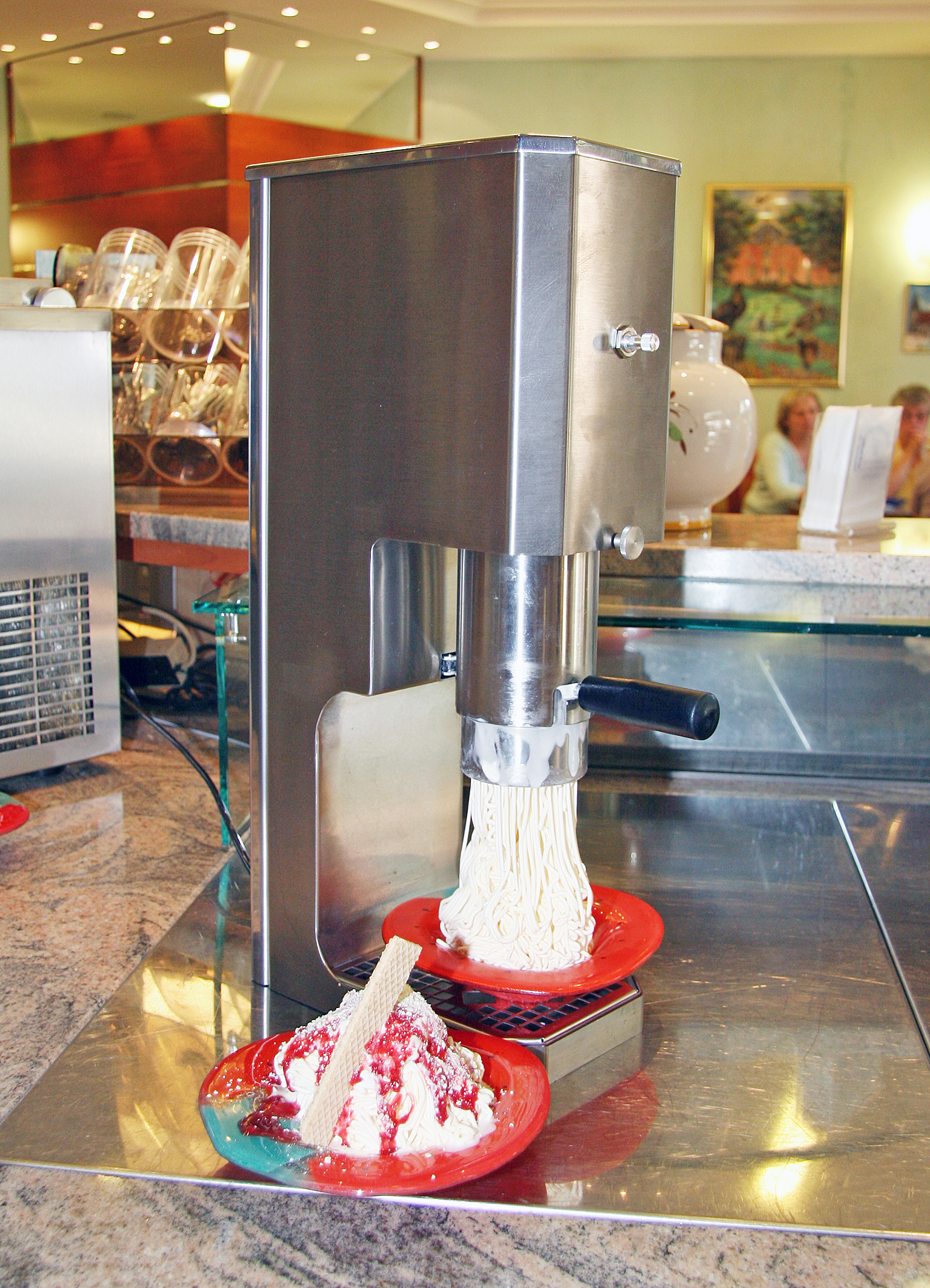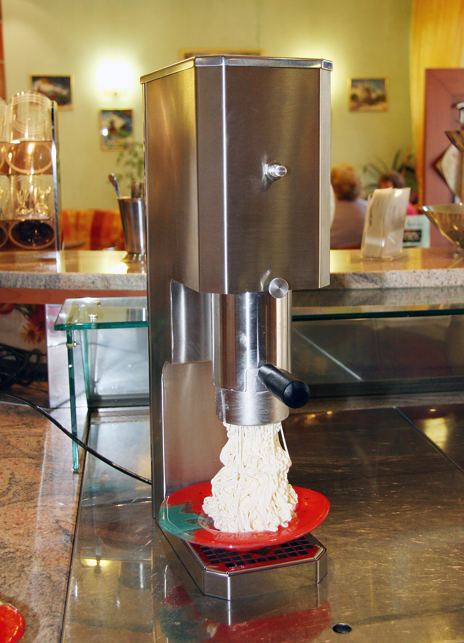 Unsere pneumatisch betriebene Spaghetti-Eispresse ist schnell und leicht zu reinigen. Durch ihre Kompaktheit ist sie äußerst platzsparend und somit ideal für jedes Eiscafe. Alle mit Speiseeis in Berührung kommenden Komponenten sind leicht demontierbar und spülmaschinenfest.