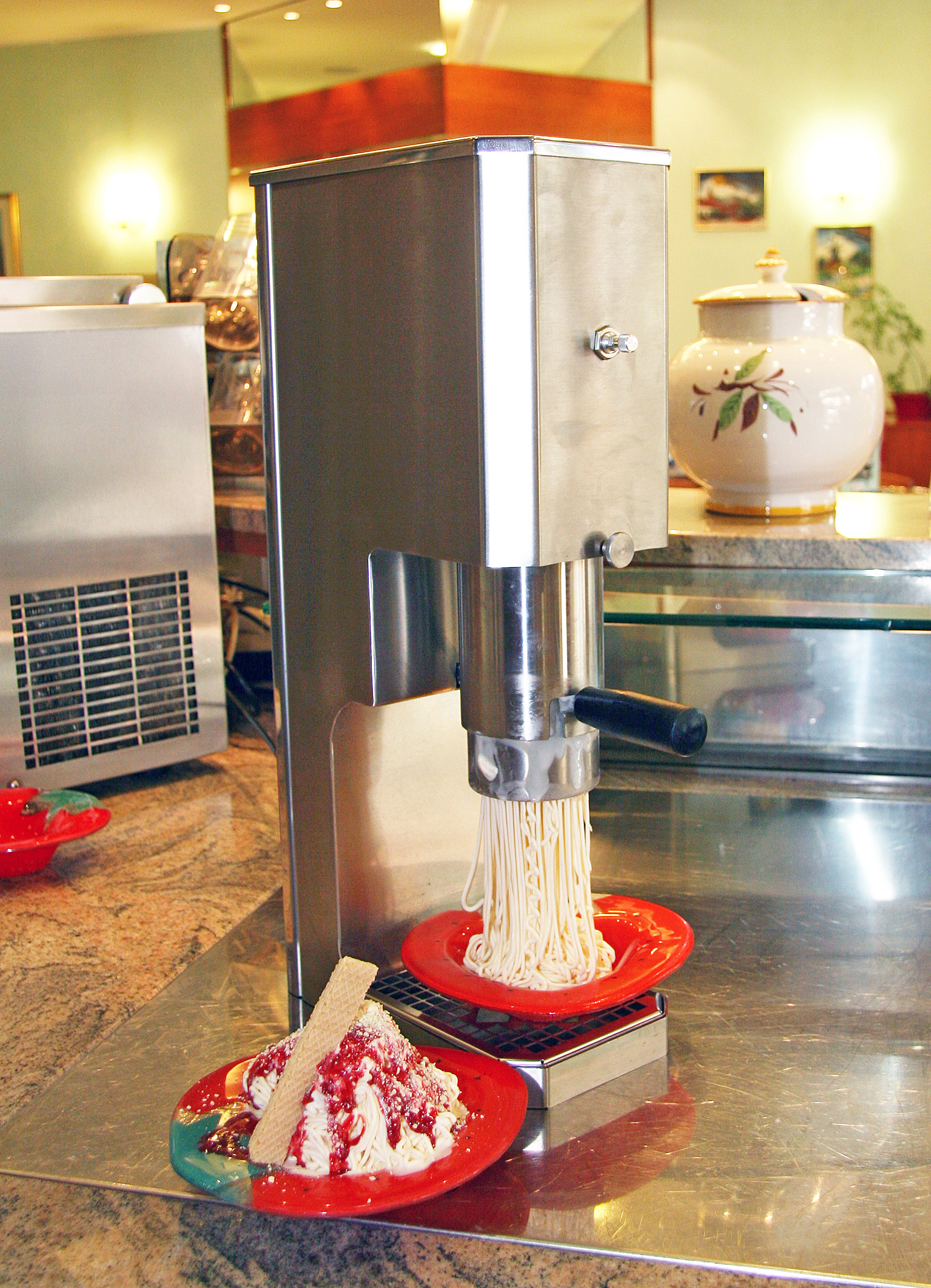 Our pneumatically operated spaghetti ice cream press is quick and easy to clean. Its compact design makes it extremely space-saving, making it ideal for any ice cream parlor. All components that come into contact with ice cream are easily disassembled and dishwasher-safe.